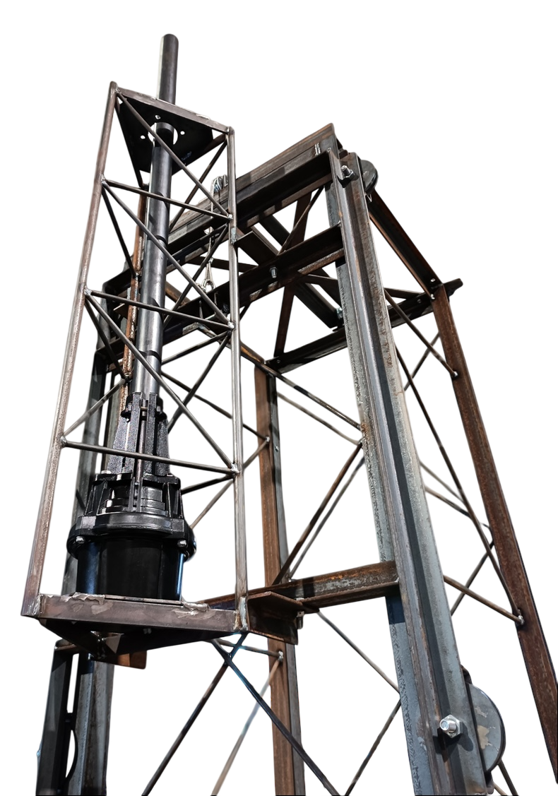 – Chariot coulissant avec support de cage à rotor, avec système de verrouillage automatique en position haute.