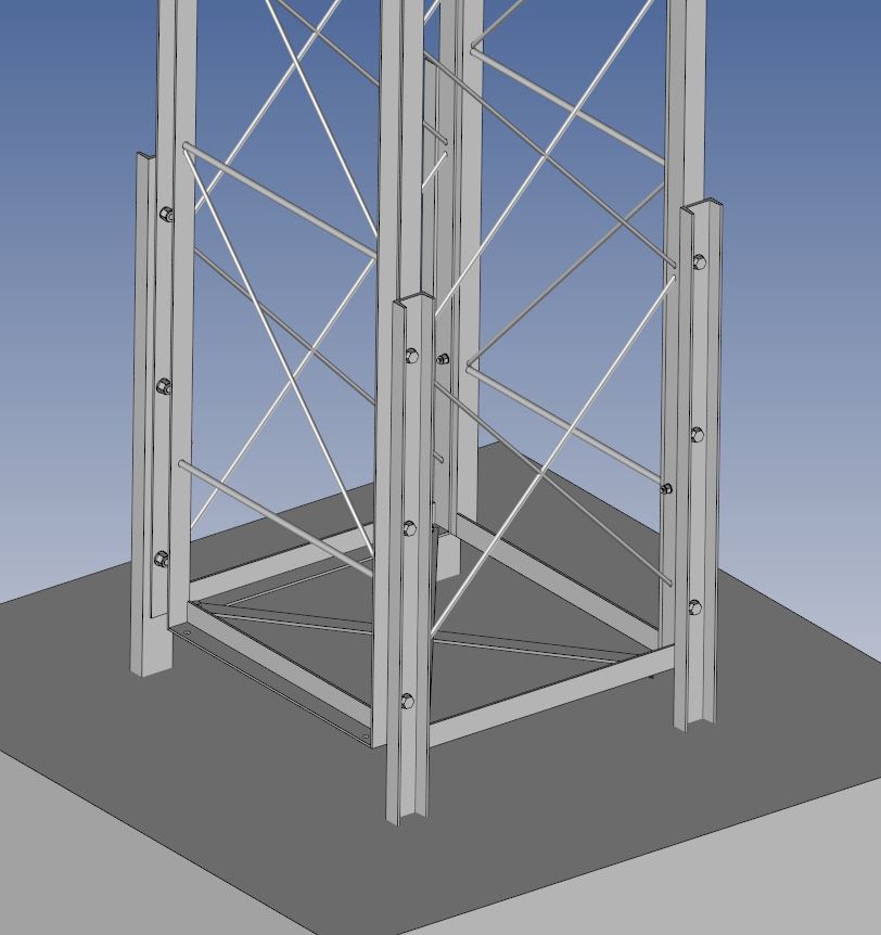 Tous les éléments du pylône sont réalisés en acier galvanisé.