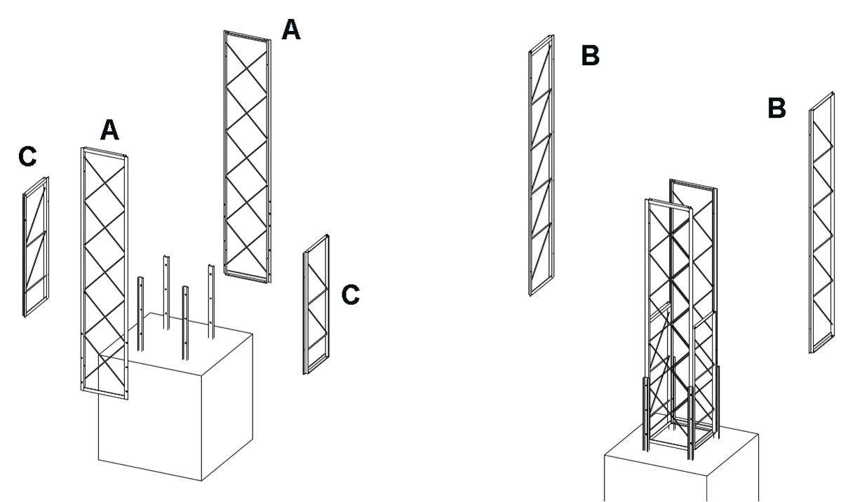 ZTOWERS est une gamme de pylônes autoportants en kit, qui offrent légèreté et robustesse. De section carrée (53x53cm), ils sont composés de panneaux assemblés, montés en quinconce, pour une résistance optimale.
